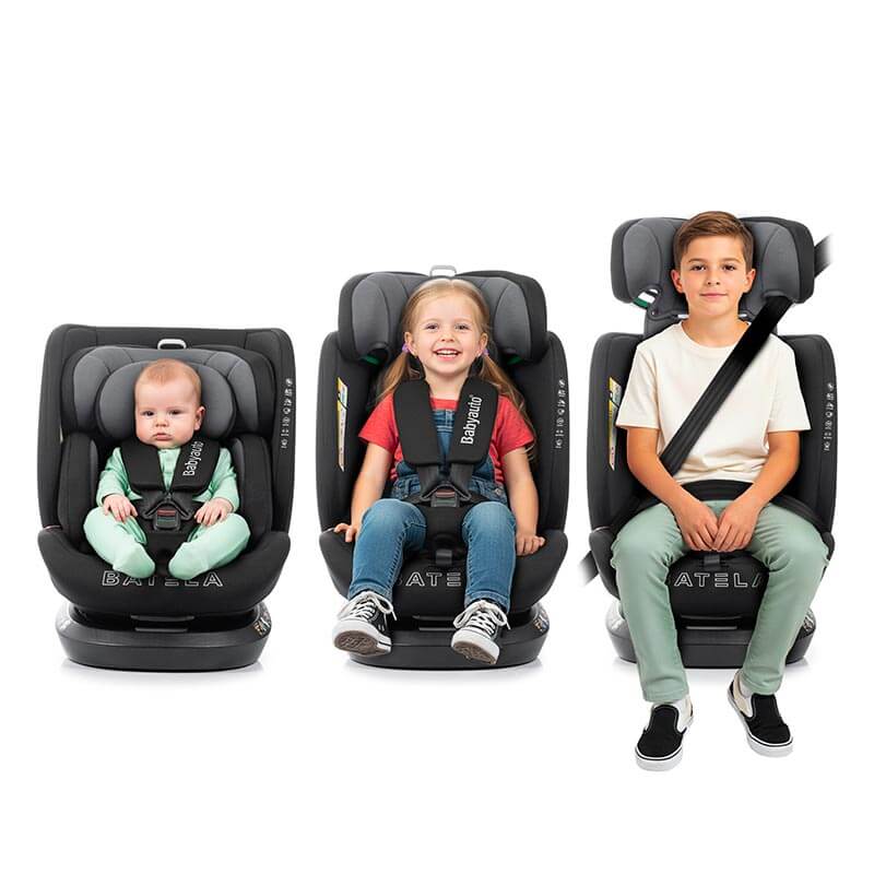 La silla de coche Batela ifix evoluciona con tu bebé desde el nacimiento hasta los 12 años de edad manteniéndole seguro durante su crecimiento.