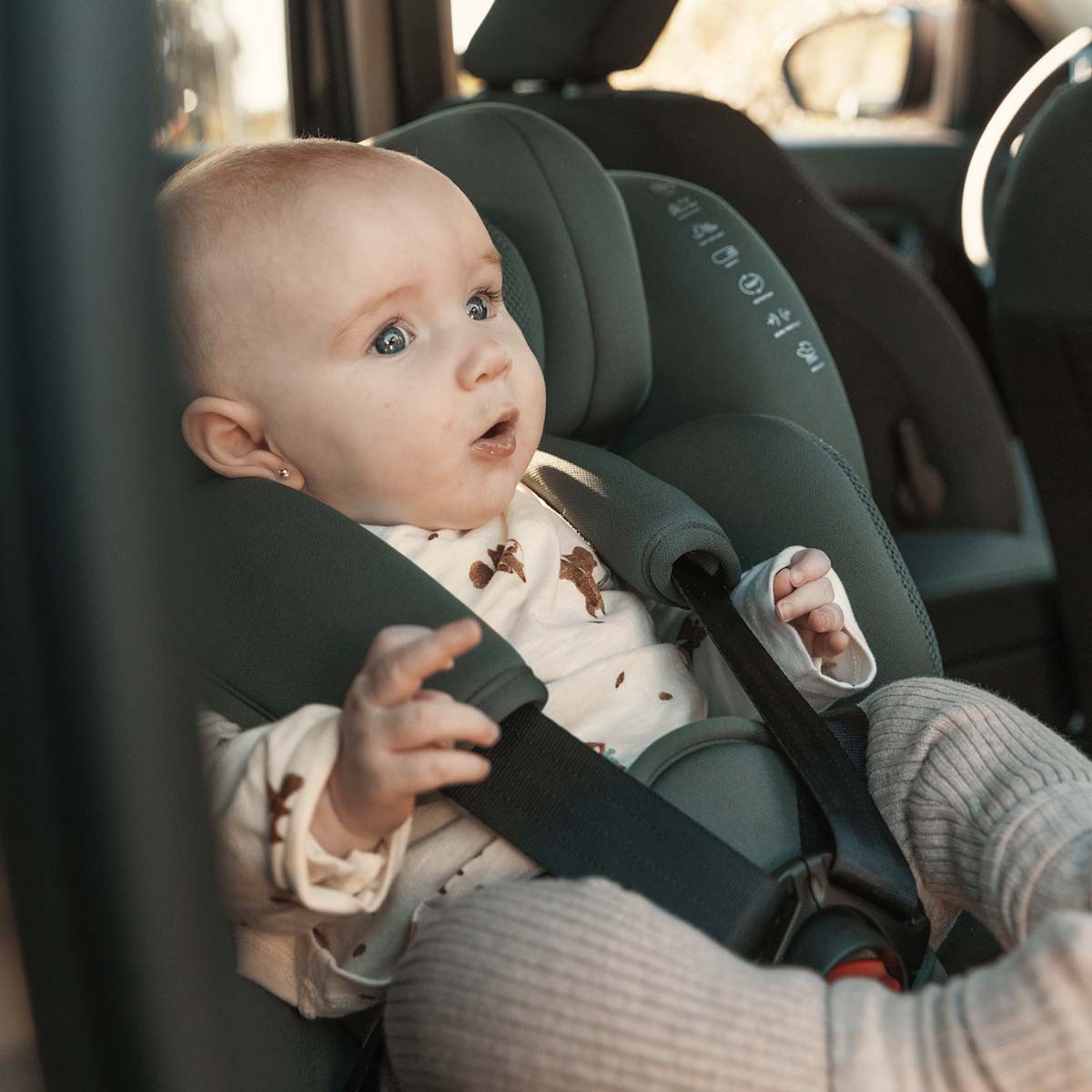 Cómoda para tu bebé y también para ti gracias a su sistema de rotación, que te permitirá girar la silla hacia la puerta y colocar a tu pequeño de una forma más fácil y cómoda.